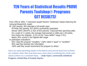 The Parents Toolshop® is not just an award-winning book; it’s an evidence-based parent education program with 30 years of outstanding results with over 100,000 parents and professionals worldwide — and continuously in Ohio. Our original funder said of other programs, “Our statistics show that none have even come close to achieving the results your classes …